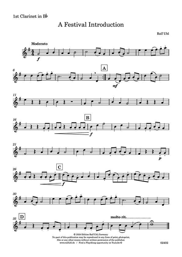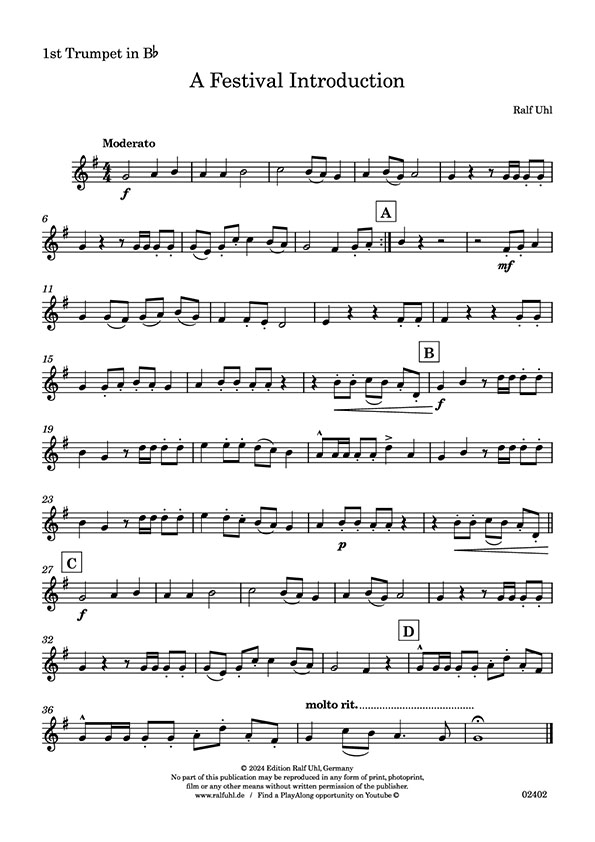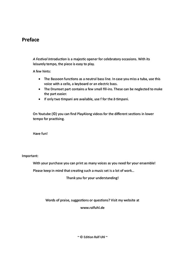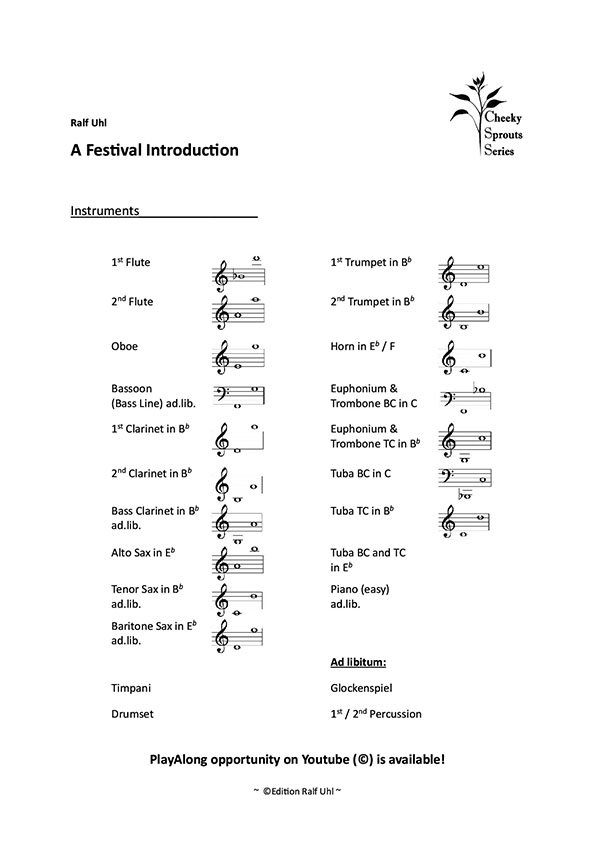 A Festival Introduction ist ein majestätisches Eröffnungswerk aus der Young Sprouts Series. Benötigen Sie einen feierlichen, mutigen Start bei Ihrem Auftritt? Dann ist dieses Werk genau das Richtige für Sie und Ihre jungen Musikerinnen und Musiker! Der Satz eignet sich gleichermaßen für kleinere Ensembles wie auch für große Besetzungen!