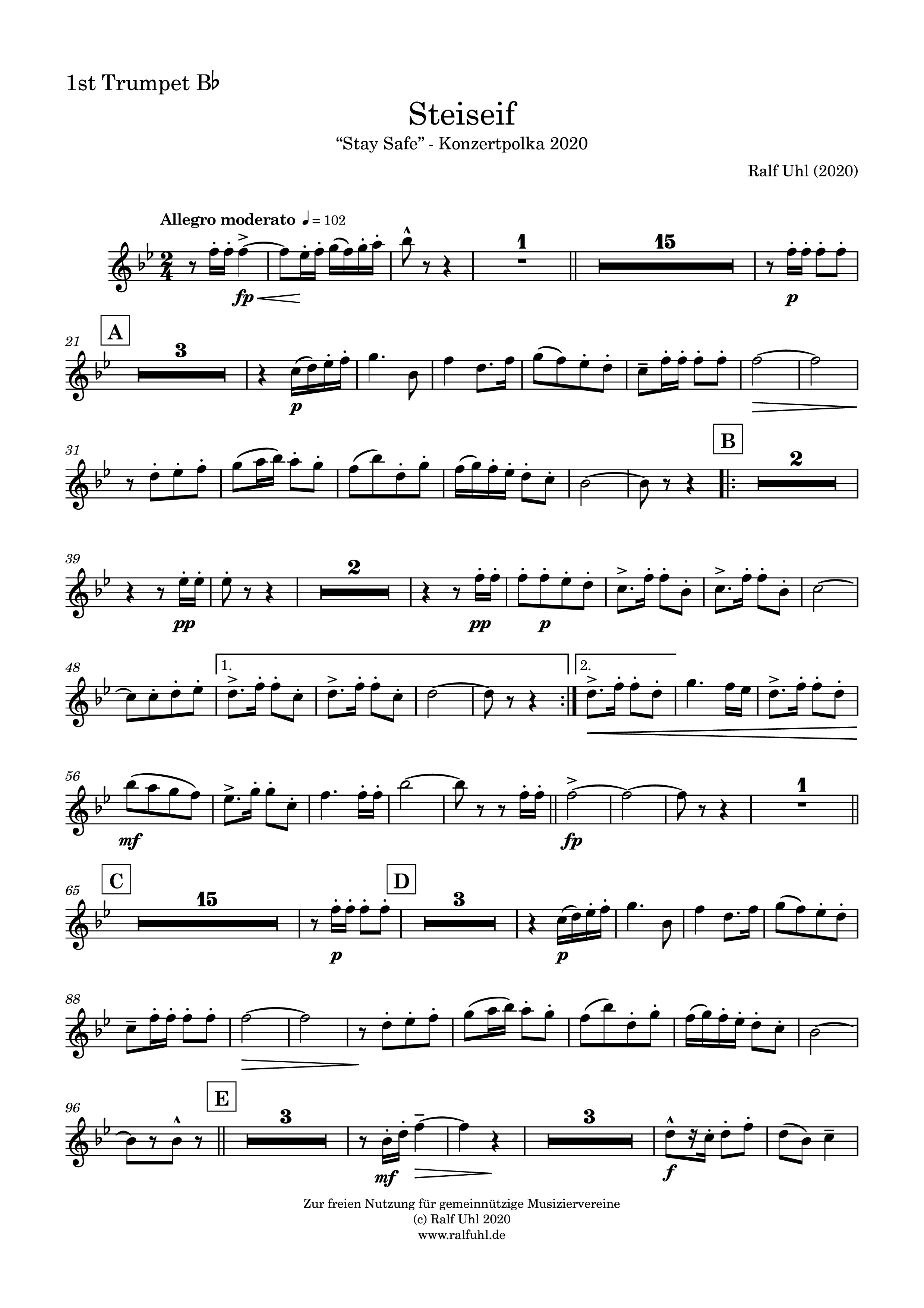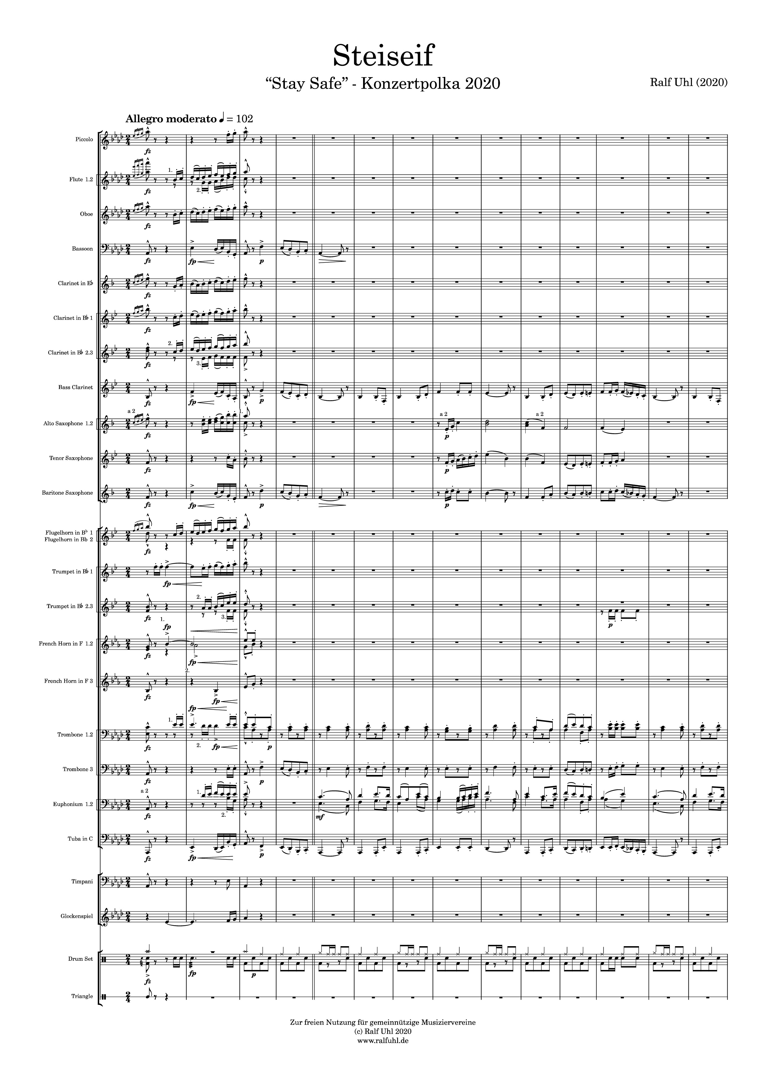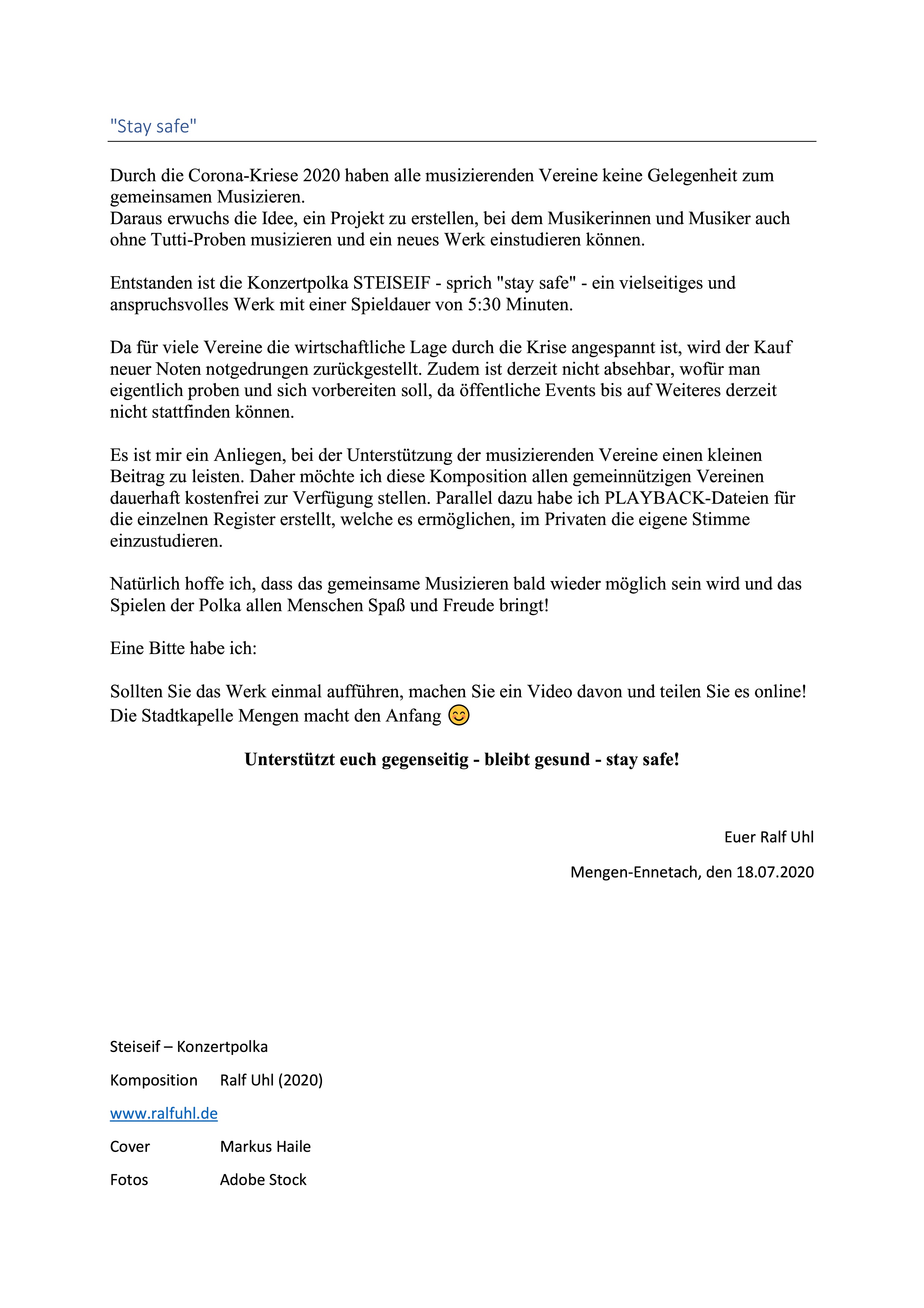 Entstanden ist die Konzertpolka STEISEIF - sprich "Stay Safe" - ein vielseitiges und anspruchsvolles Werk mit einer Spieldauer von gut fünf Minuten.